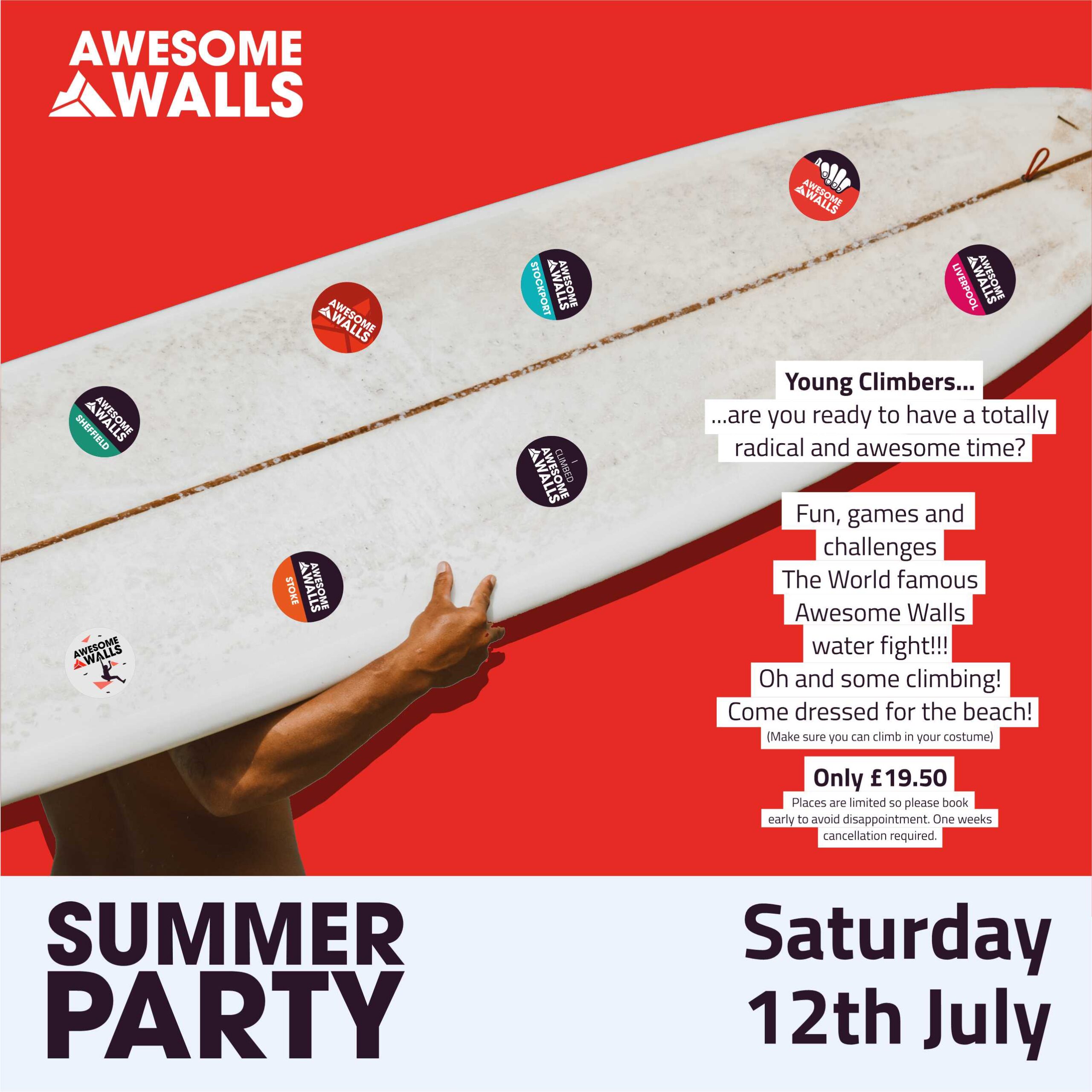 Join us on Saturday 12th July for fun, games and challenges plus the World famous Awesome Walls  water fight!!! (sorry but no water fight in Stockport)
